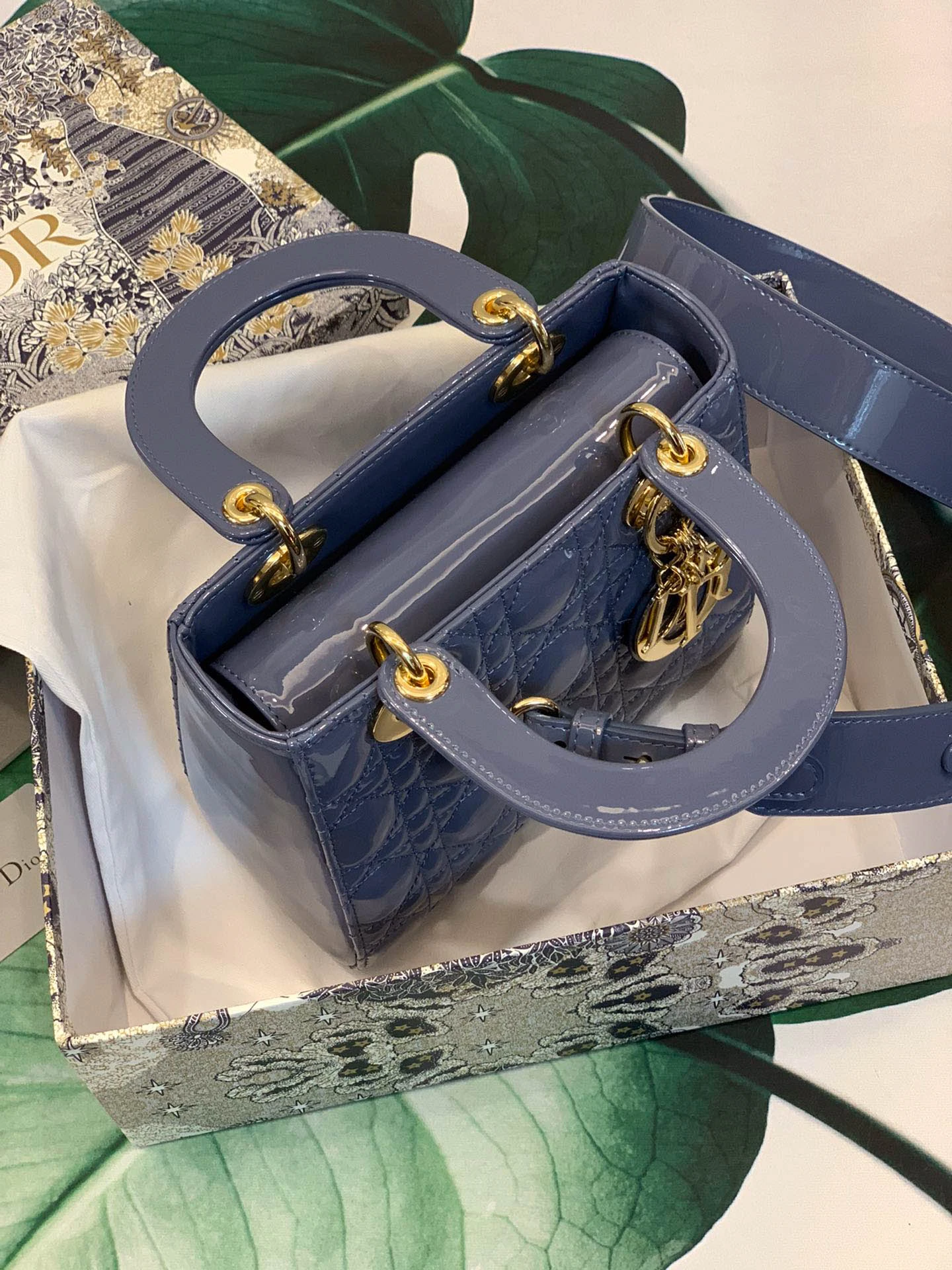 ABCDior Calf Patent Leather Rattan Tote Size: 20 x 16.5 x 8cm