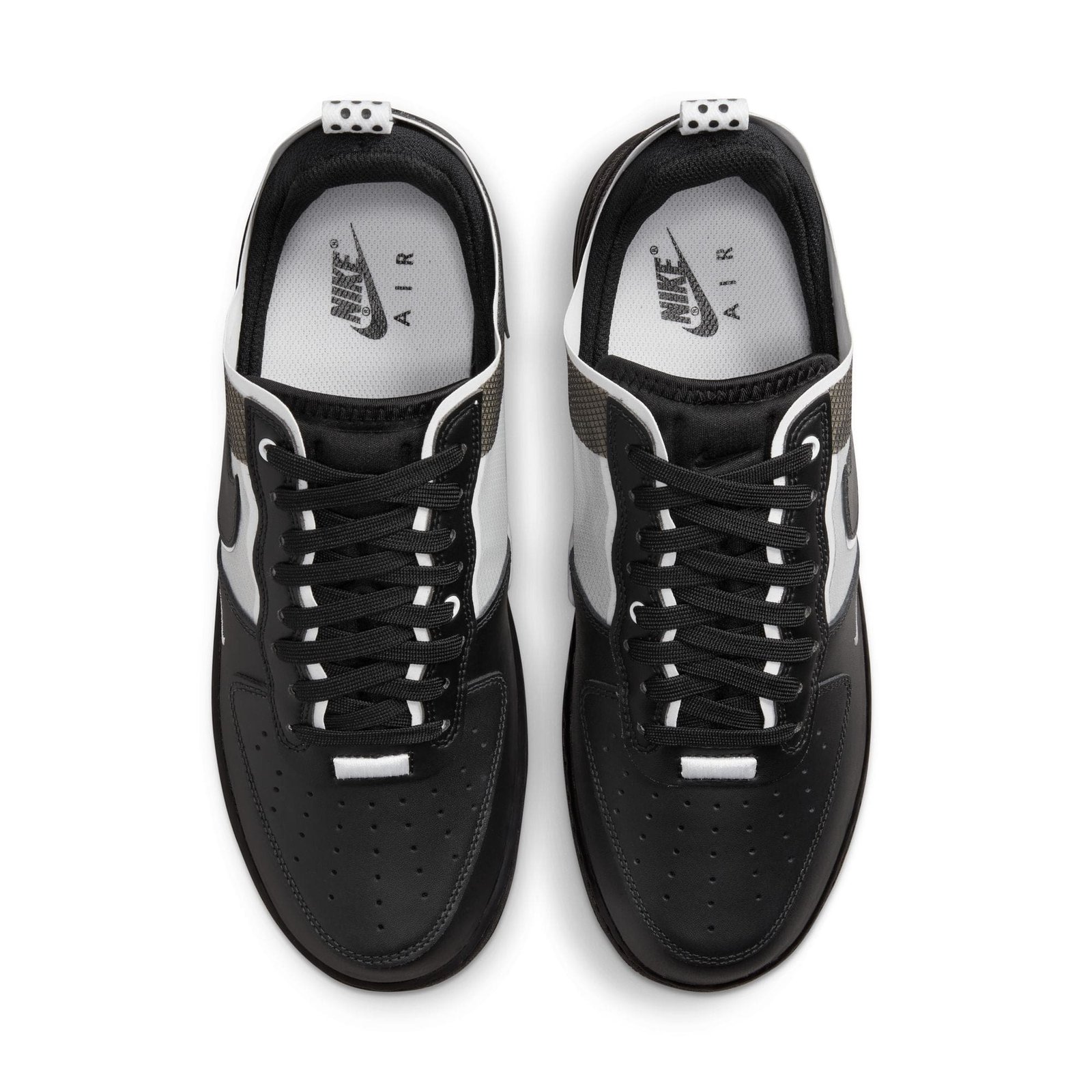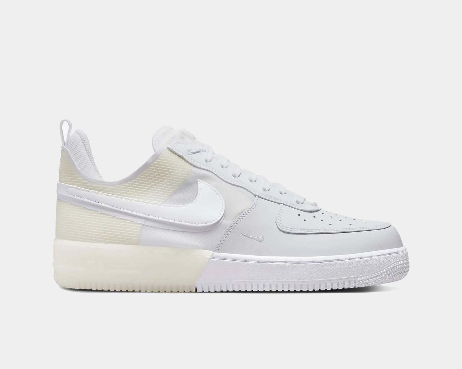 - The Nike Air Force 1 React shoes’ (black or white) rubber outsole with translucent accents adds traction and durability.
