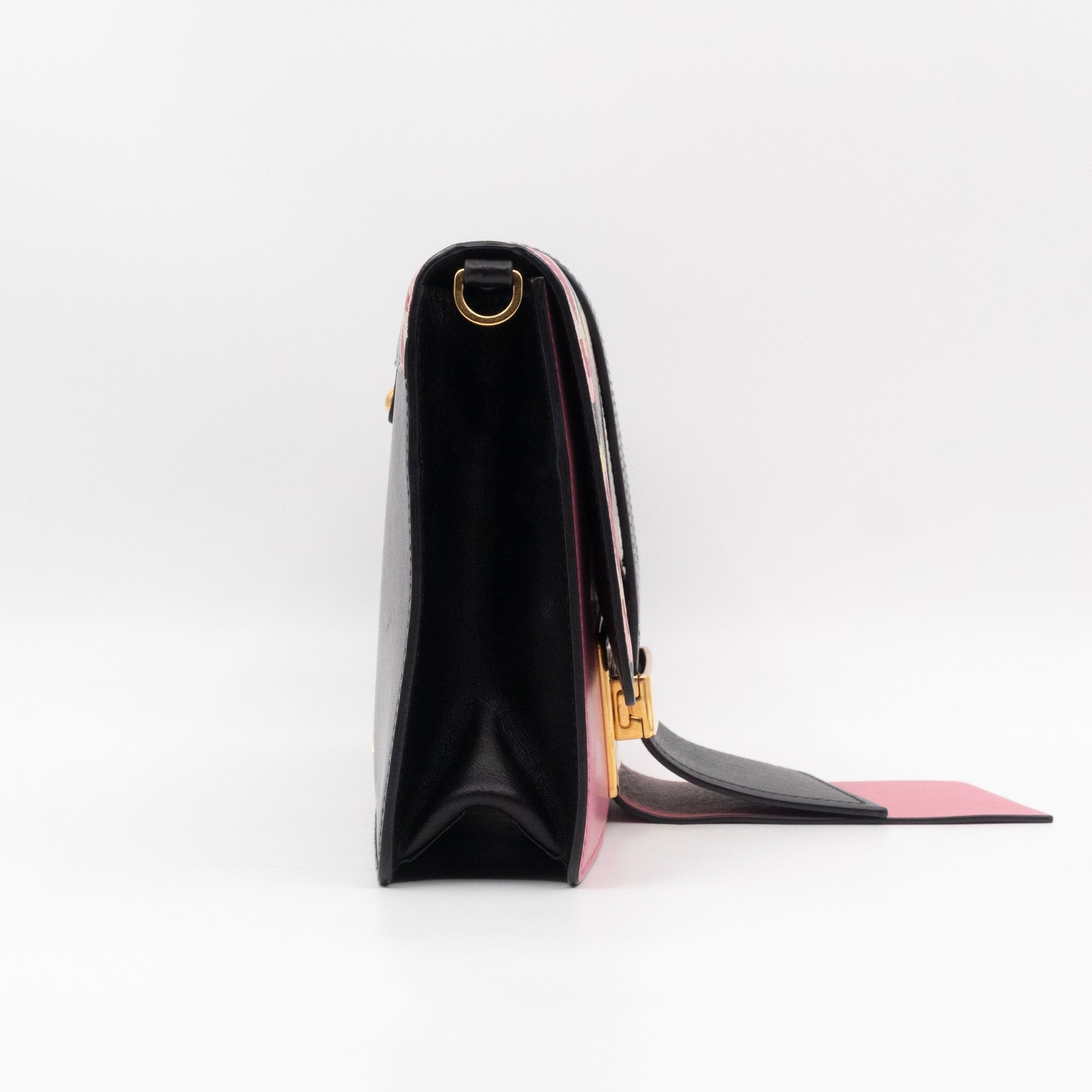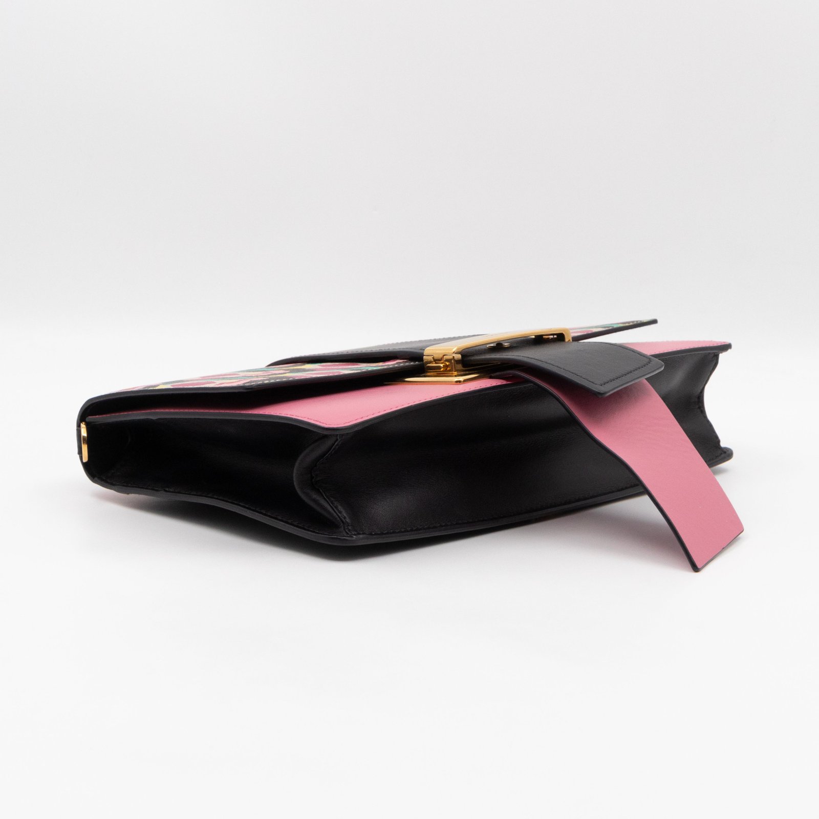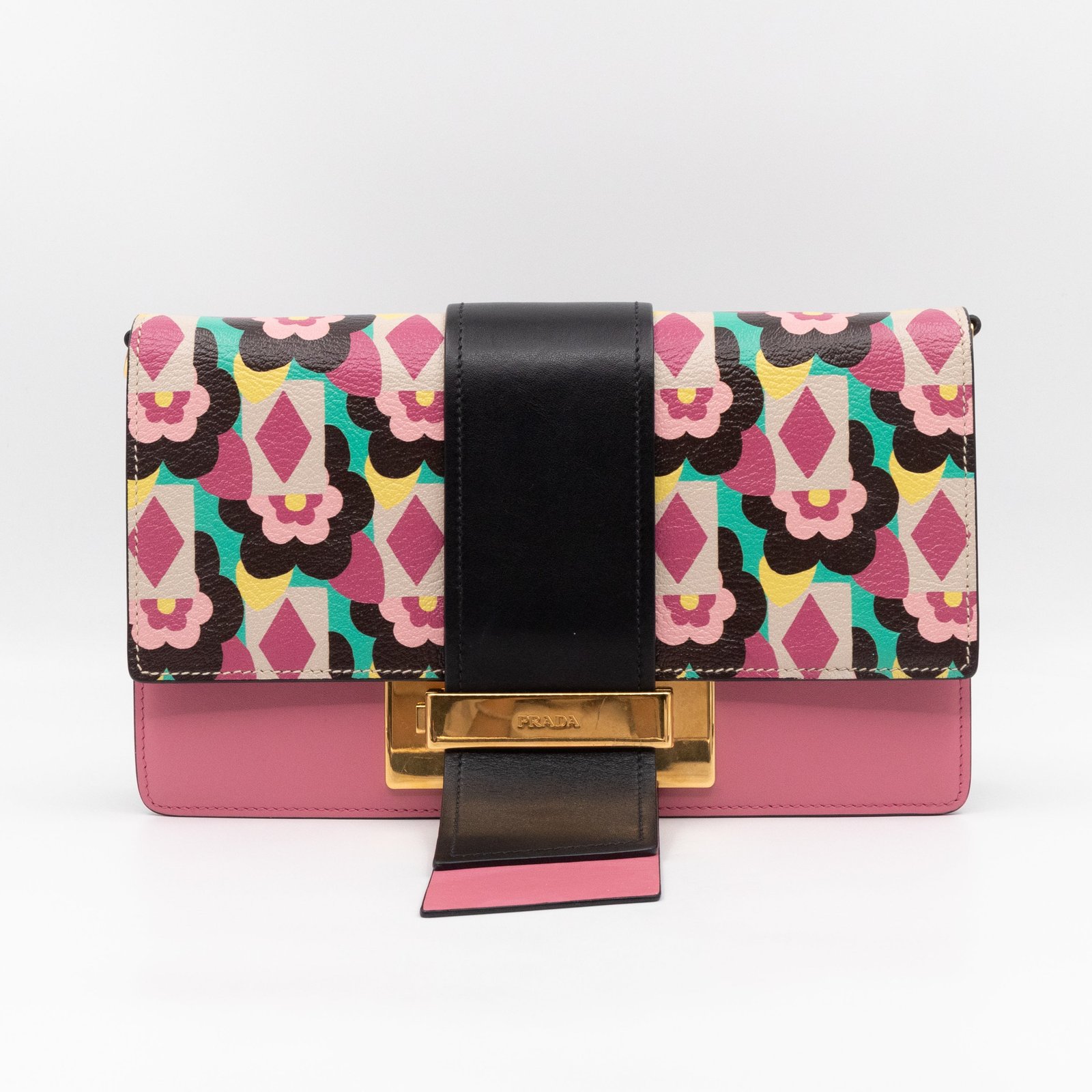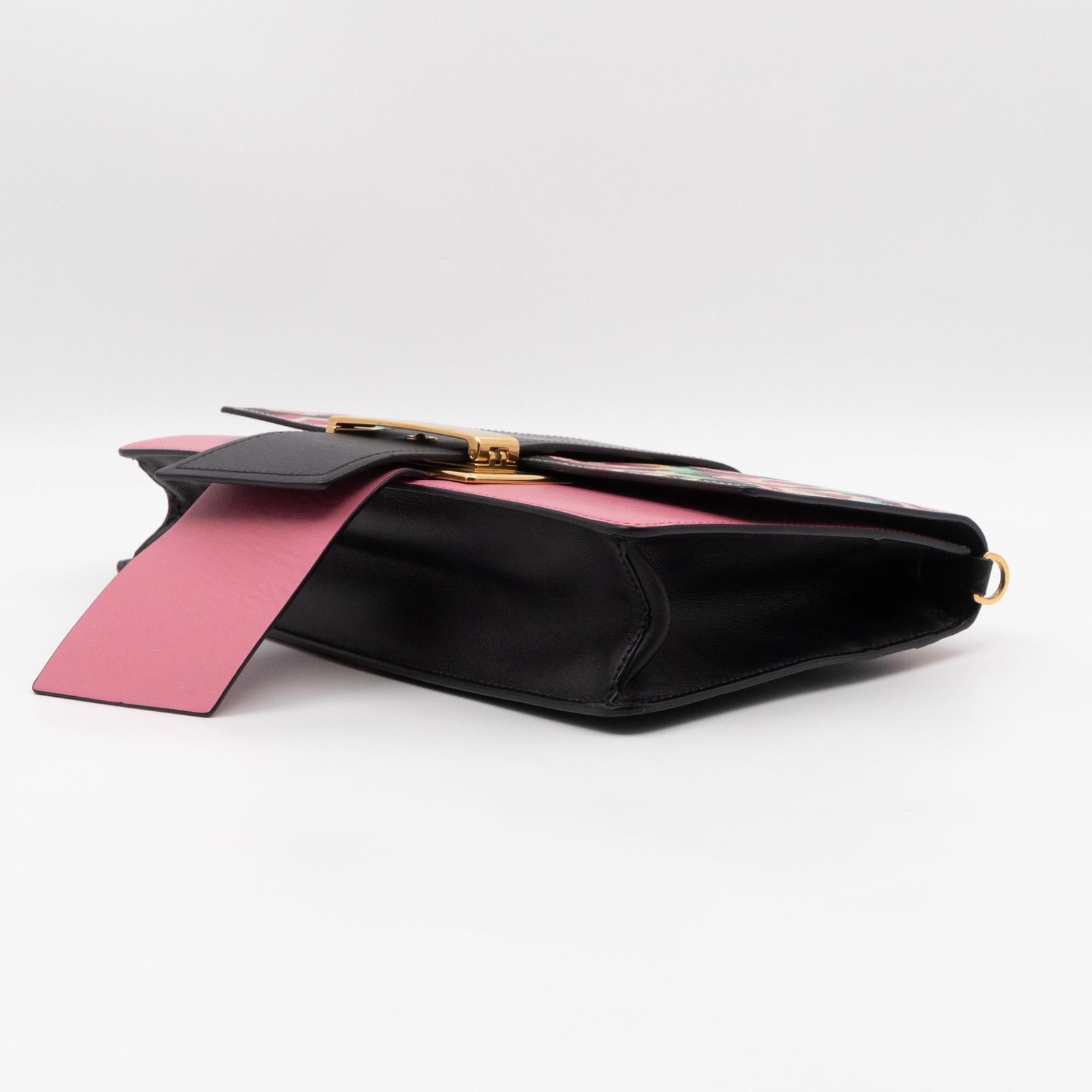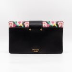 This is a Prada Multicolor Floral Print Leather Plex Ribbon Shoulder Bag from Spring/Summer 2017 Bag Collection. Crafted from peony floral print leather and gold-tone hardware for a chic finish. Opens to a black canvas interior. Carry your every day essentials in style. Pink & black reversible long strap makes this easy to use as a daily crossbody bag. The retail price is €1950.