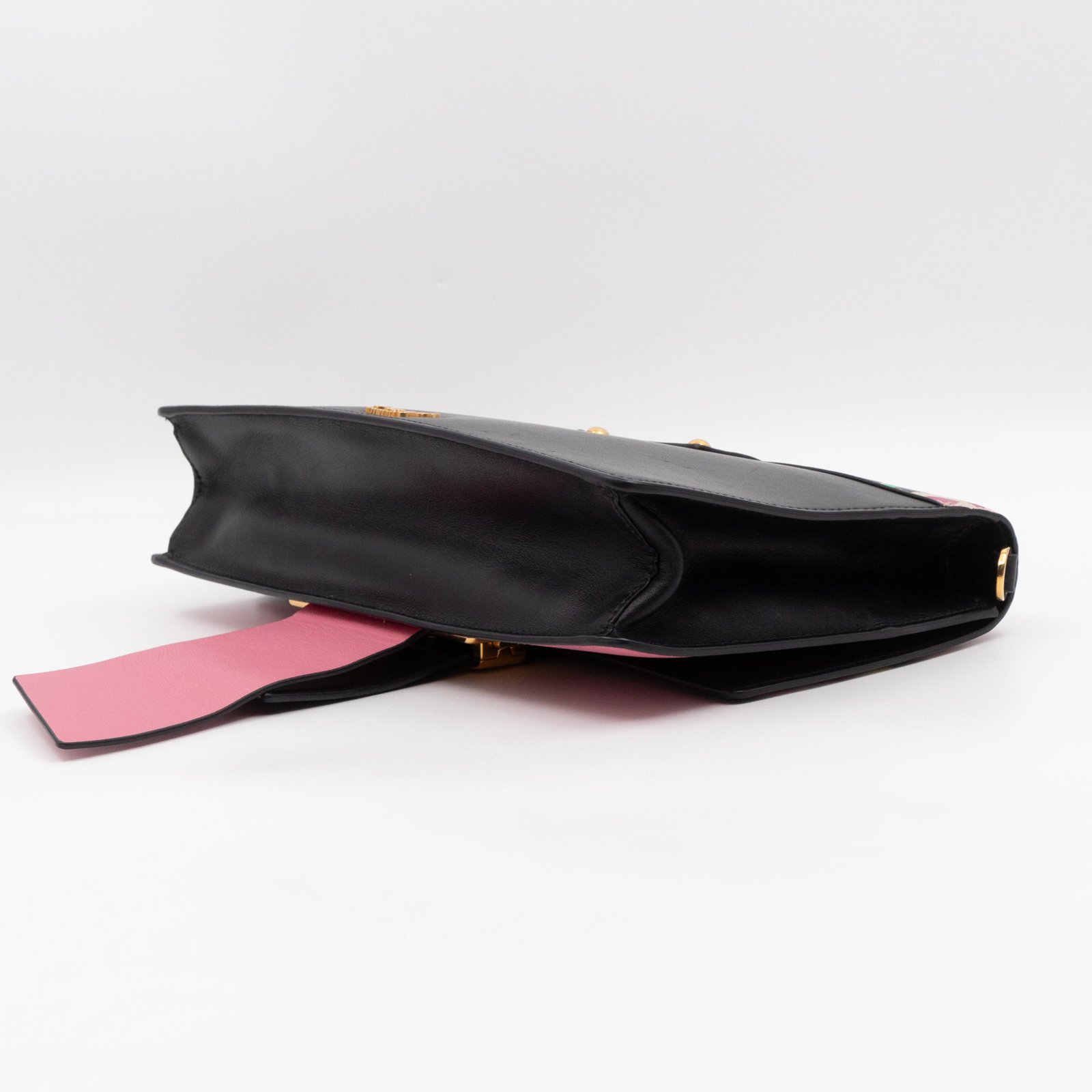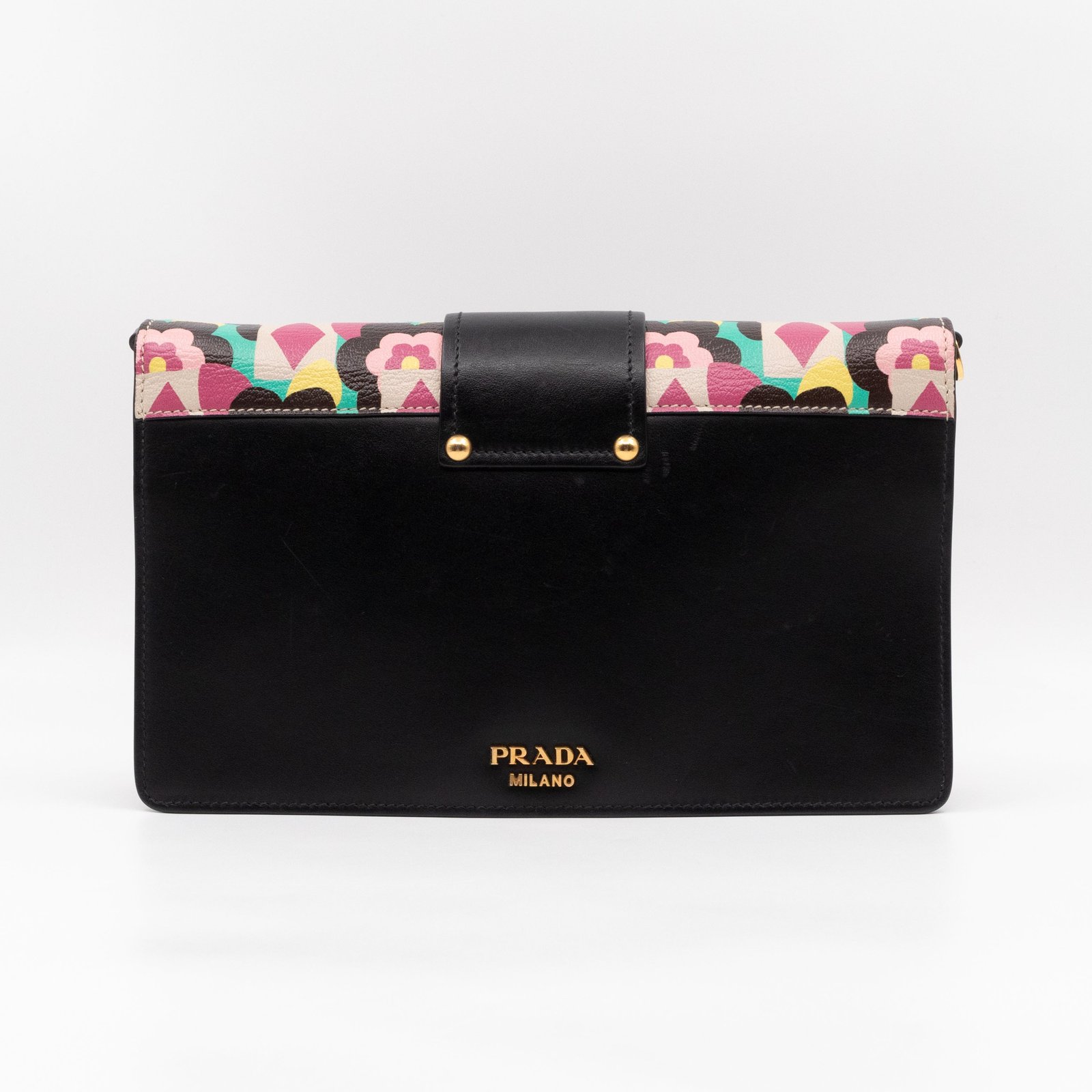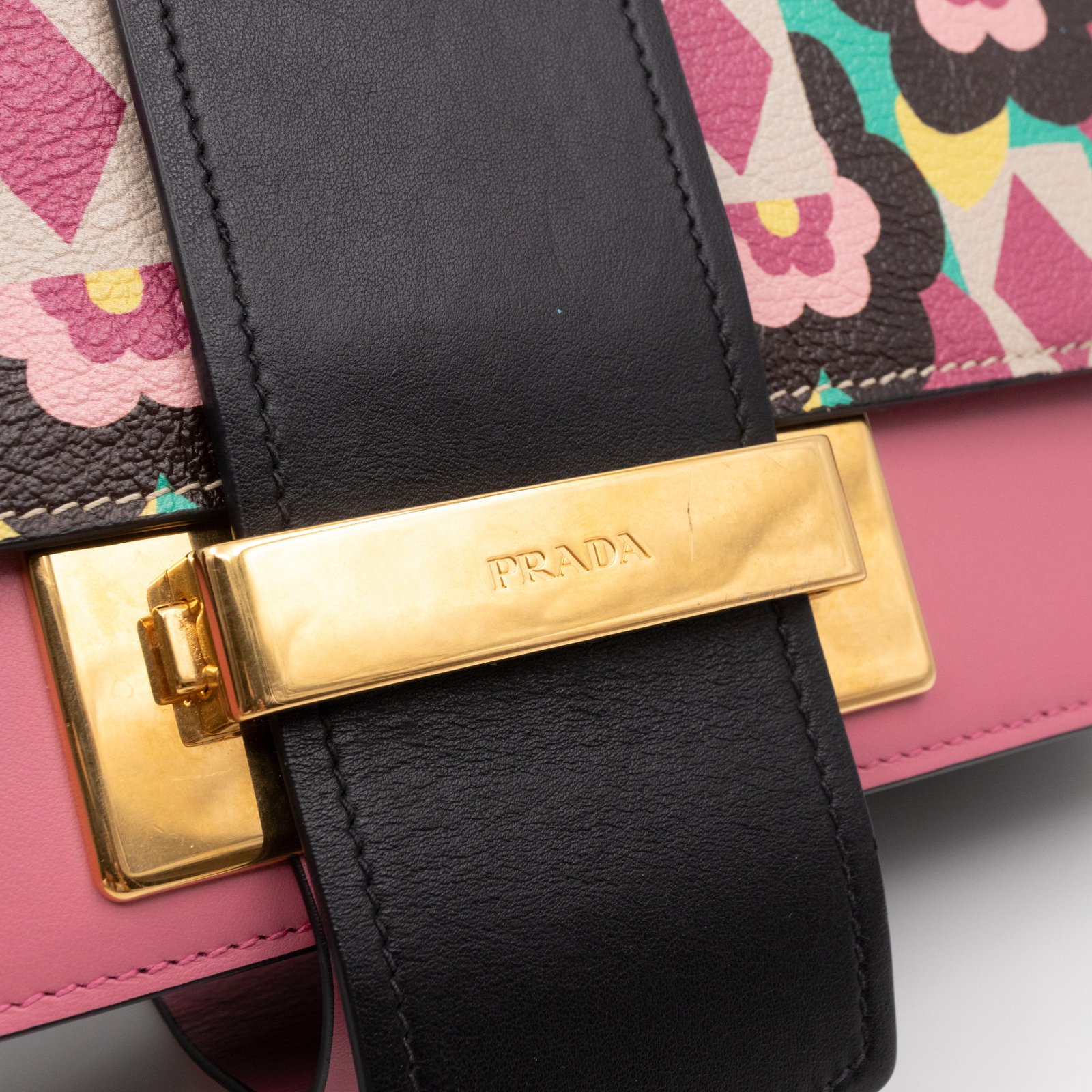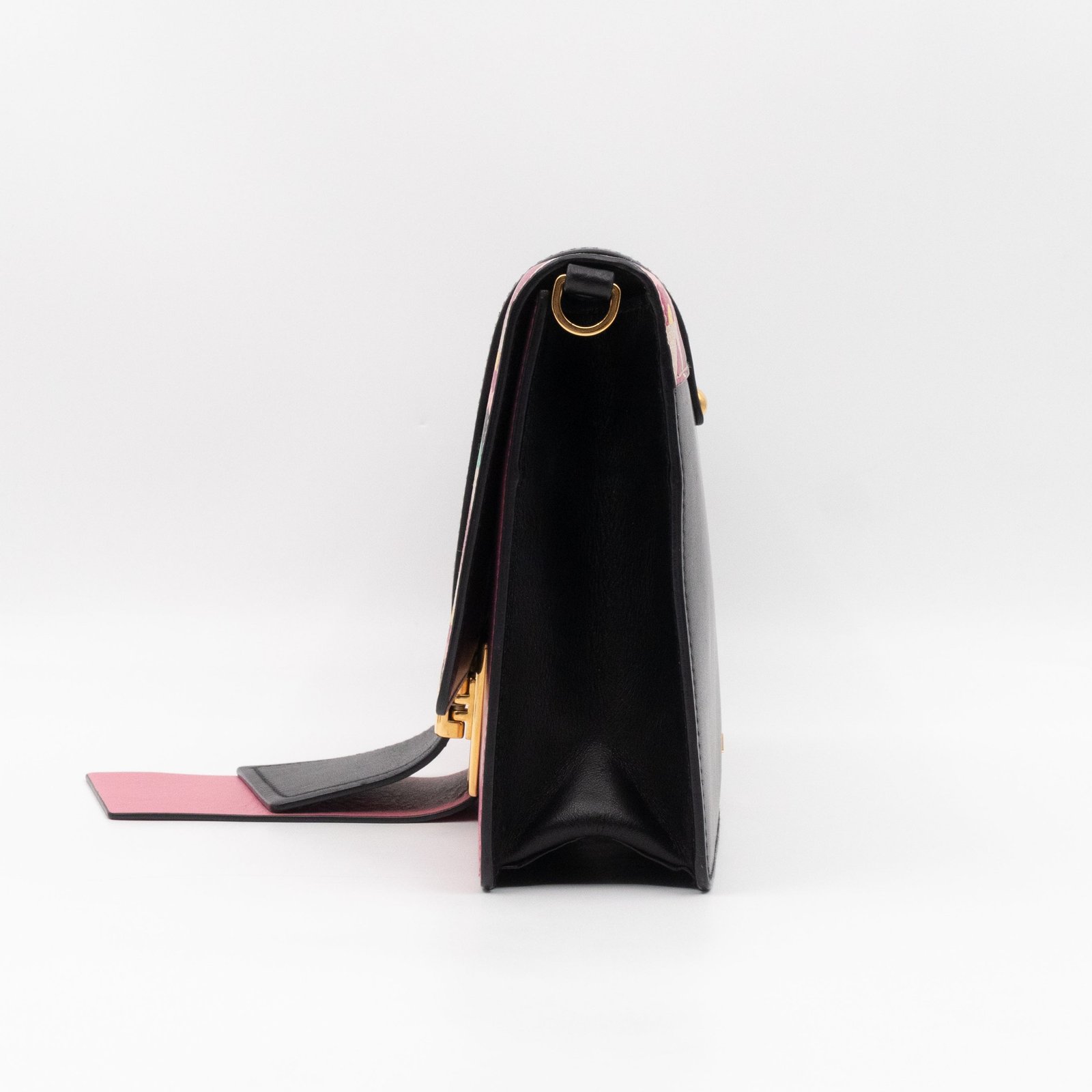 This is a Prada Multicolor Floral Print Leather Plex Ribbon Shoulder Bag from Spring/Summer 2017 Bag Collection. Crafted from peony floral print leather and gold-tone hardware for a chic finish. Opens to a black canvas interior. Carry your every day essentials in style. Pink & black reversible long strap makes this easy to use as a daily crossbody bag. The retail price is €1950.