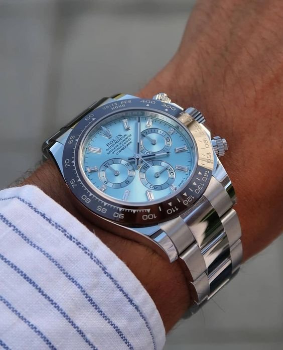 The ice-blue dial is the discreet and exclusive signature of a Rolex platinum watch. Rolex uses platinum, the noblest of metals, for the finest of watches.